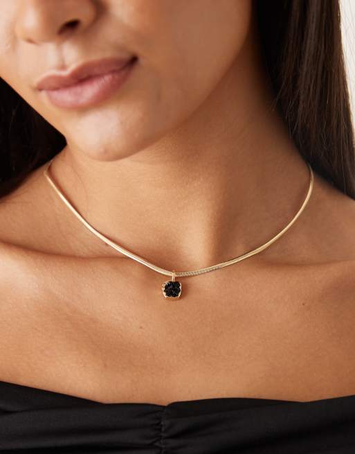 DesignB London - Ketting met slangenschakels en hangertje met zwarte steen in goud
