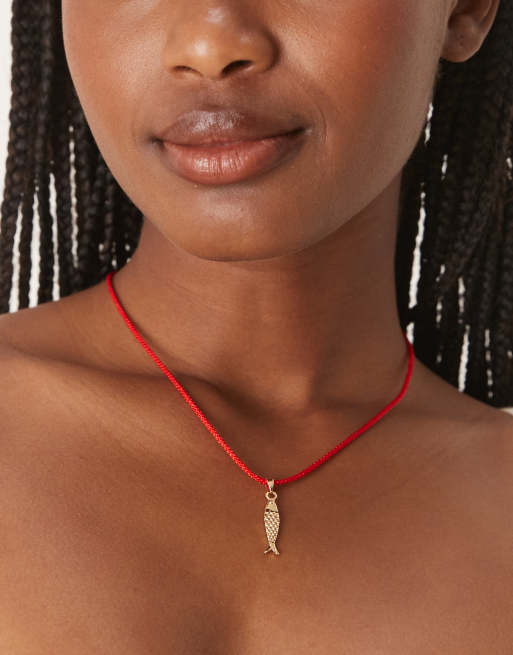 DesignB London - Ketting van geknoopt touw met visvormig hangertje in rood