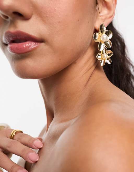 DesignB London - Oorbellen met bloemen met pareldetails in goud