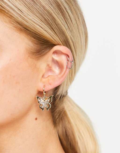 DesignB London - Oorbellen met kristallen vlindertjes in goudkleur