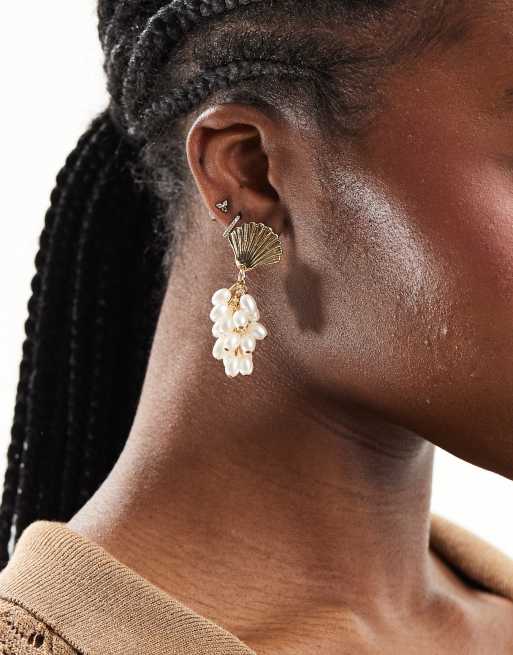 DesignB London - Oorhangers met schelp en pareltjes in goud