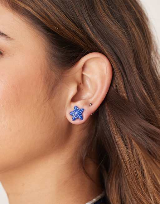 DesignB London - Oorknopjes van hars met zeesterrenknopjes in blauw