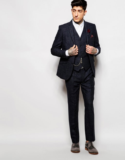 Devils Advocate - Kostuum van gevlokt tweed in blauw