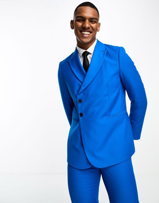 Devil's Advocate - Slim-fit double breasted colbert met gepunte revers in koningsblauw