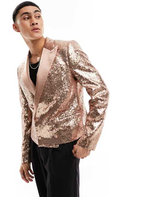 Devil's Advocate - Smalle cropped double breasted colbert met gouden lovertjes