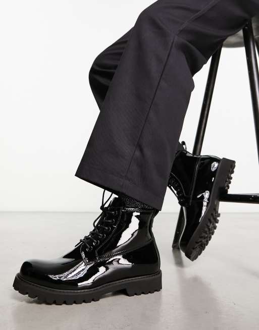 Devil's Advocate - Veterlaarzen van lakleer met dikke zool in zwart