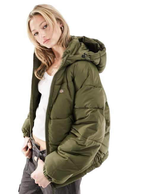 Dickies - Alatna - Oversized gewatteerd jack met capuchon in groen