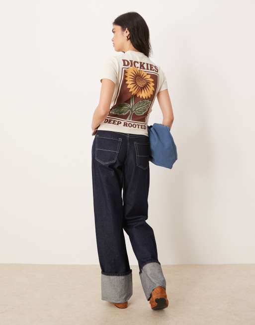 Dickies - Baby T-shirt met grafische zonnebloemprint op de achterkant in gebroken wit, exclusief bij ASOS