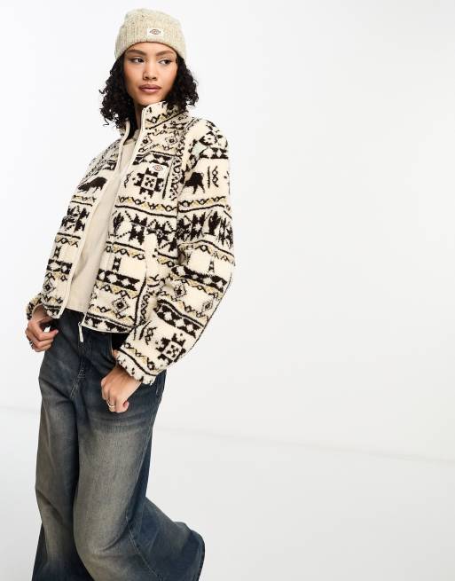 Dickies - Hays - Fleece jack met patroon in gebroken wit