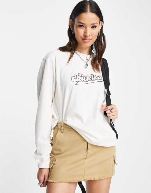 Dickies - T-shirt in collegestijl met lange mouwen in wit, Exclusief bij ASOS
