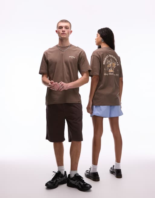 Dickies - T-shirt met grafische pizza-print op de achterkant in bruin, exclusief bij ASOS