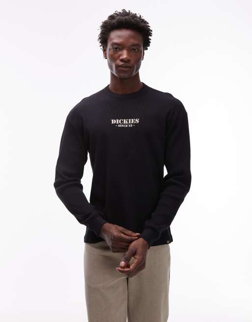 Dickies - T-shirt van wafelstof met lange mouwen en logo in het midden in zwart