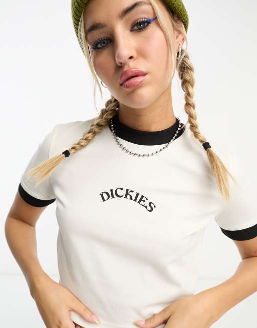 Dickies - Warm Springs - Kort T-shirt met centraal logo en contrasterende rand in gebroken wit