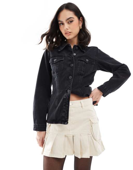 DTT - Aansluitend denim overhemd in zwart met wassing