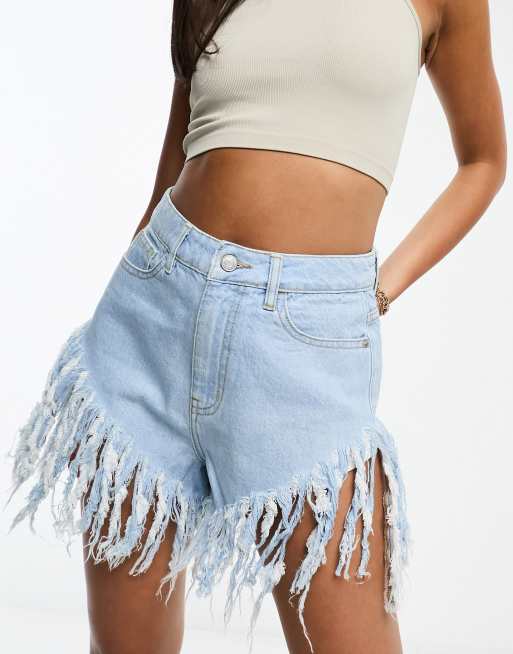 DTT - Festival - Extreem gerafelde denim shorts in lichtblauw