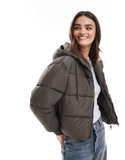 DTT - Gewatteerd jack met capuchon in donkergrijs