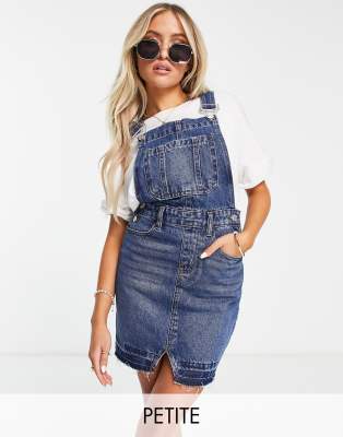 DTT Petite - Denim tuinjurk met onafgewerkte zoom in blauw