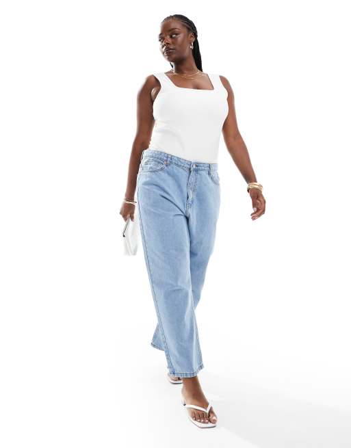 DTT Plus - Katy - Rechte jeans met hoge taille en cropped broekspijpen in lichtblauw met wassing