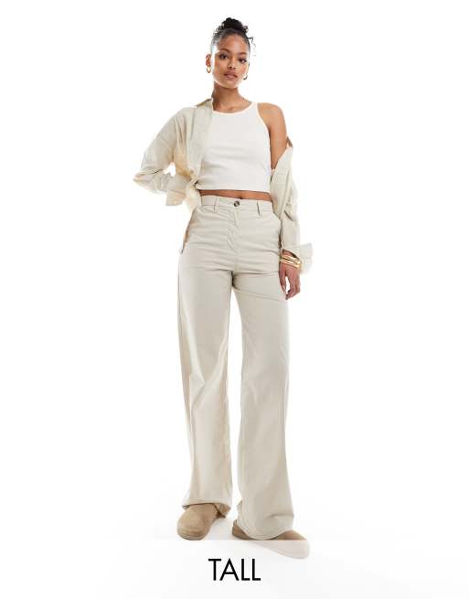 DTT Tall - Broek met hoge taille en krijtstreep in licht stone