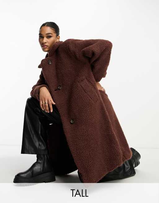 DTT Tall - Double breasted teddy borgjack met lange pasvorm in chocoladebruin
