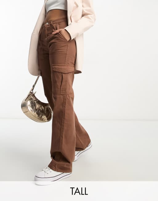 DTT Tall - Molly - Cargojeans met wijde pijpen en hoge taille in chocoladebruin