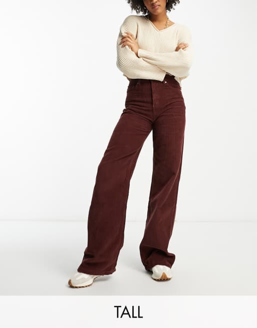 DTT Tall - Silvia - Broek met wijde pijpen van corduroy in chocoladebruin