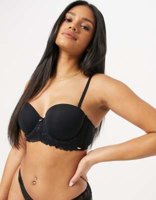 Dorina - Stacy - Licht gewatteerde balconnette-bh van polyester met kant in zwart - BLACK