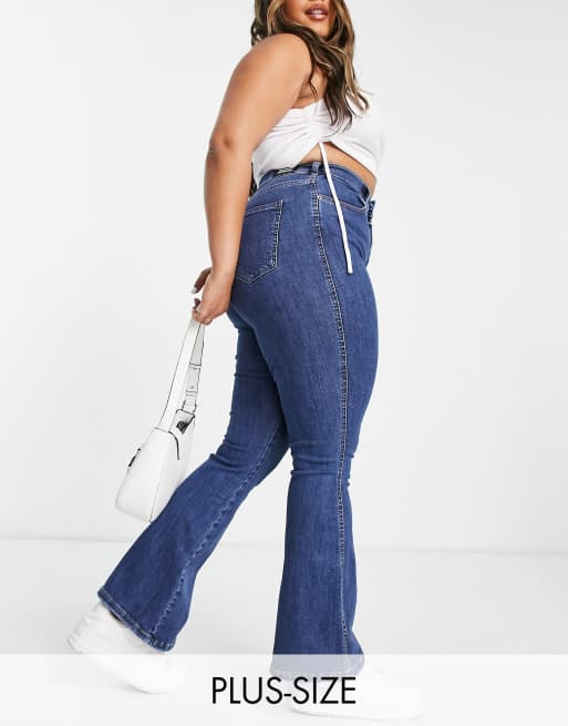 Dr Denim Plus - Moxy - Flared jeans met superhoge taille in donkere wassing