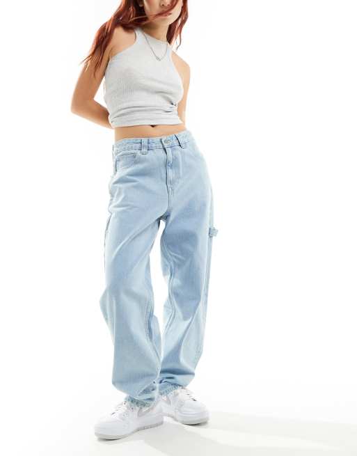Dr. Denim - Faye Worker - Jeans met wijde pijpen, baggy pasvorm en halfhoge taille in kiezelsteen superlichte retro wassing