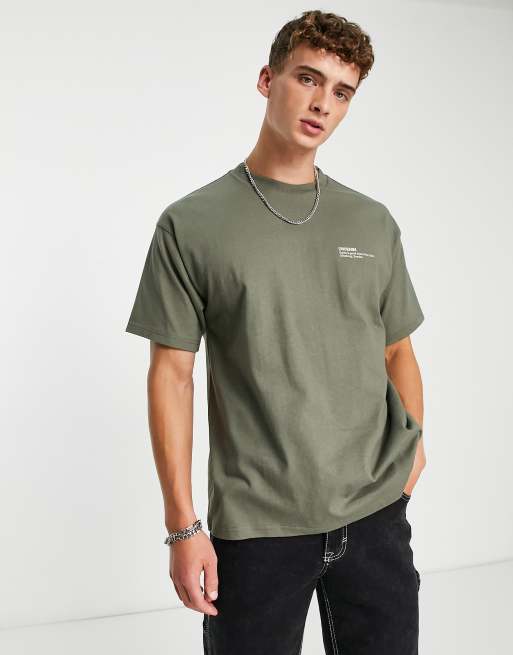 Dr Denim - Trooper - Ruimvallend T-shirt met print op de rug in kaki