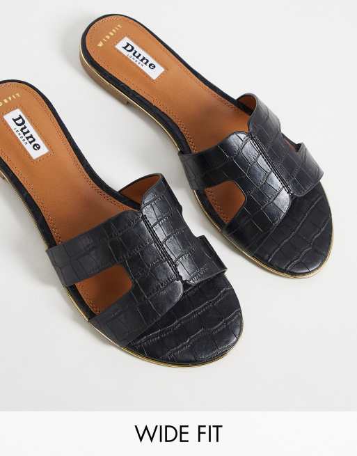 Dune London - Loopy - Platte instapsandalen met brede pasvorm in zwart met krokodillenmotief