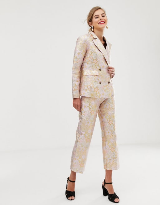 Dusty Daze - Combi-set van jacquard blazer en broek met rechte pijpen