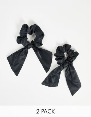 Easilocks - Scrunchie van satijn met lang lint in zwart