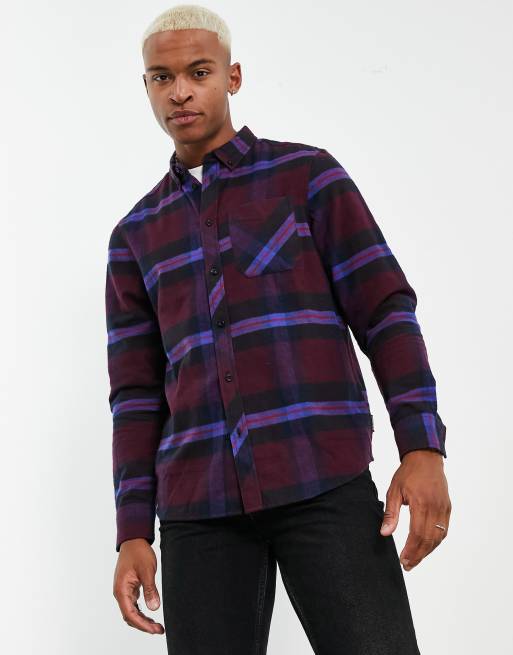 Element - Geruit houthakkersoverhemd in bordeauxrood en paars