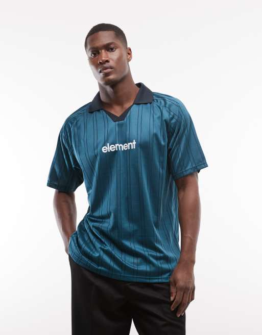 Element - Gestreept voetbalshirt met polokraag en logo in groenblauw