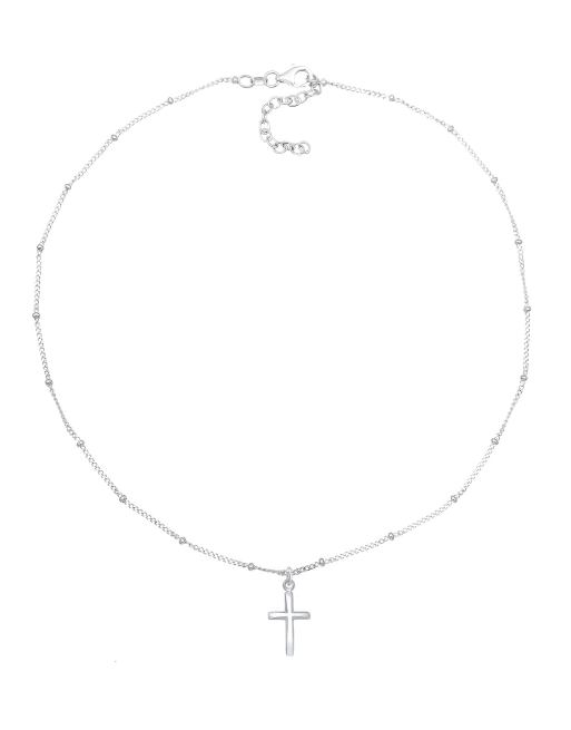 Elli - Choker-ketting voor dames van 925 sterling zilver met bolletjes en kruishangertje in zilver