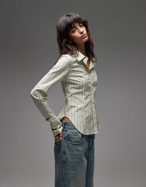 Emory Park - Getailleerd gestreept overhemd in taupe