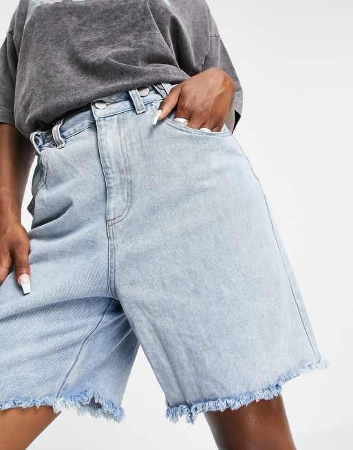 Emory Park - Lange, ruimvallende mom shorts in light wash denim