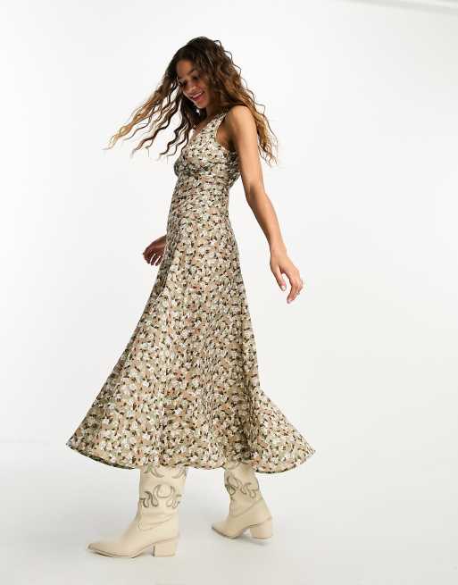 Emory Park - Midi jurk met diepe V-hals en fijne bloemenprint in groen