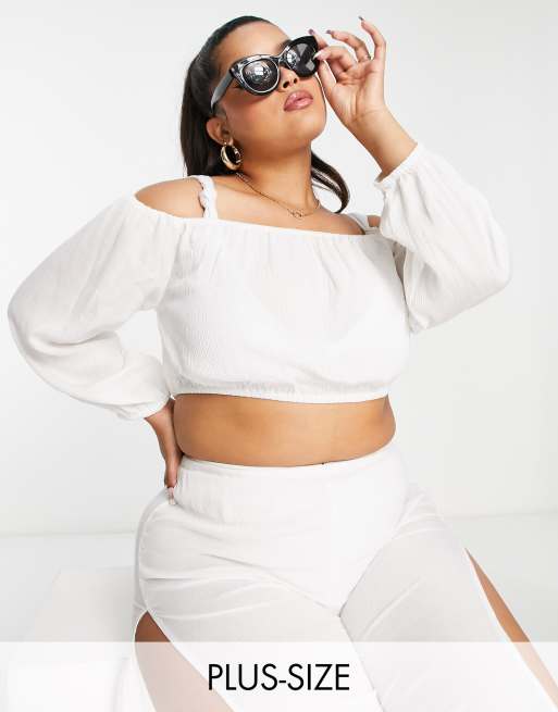 Esmee Plus - Exclusives- Bandeautop voor op het strand in wit, deel van co-ord set
