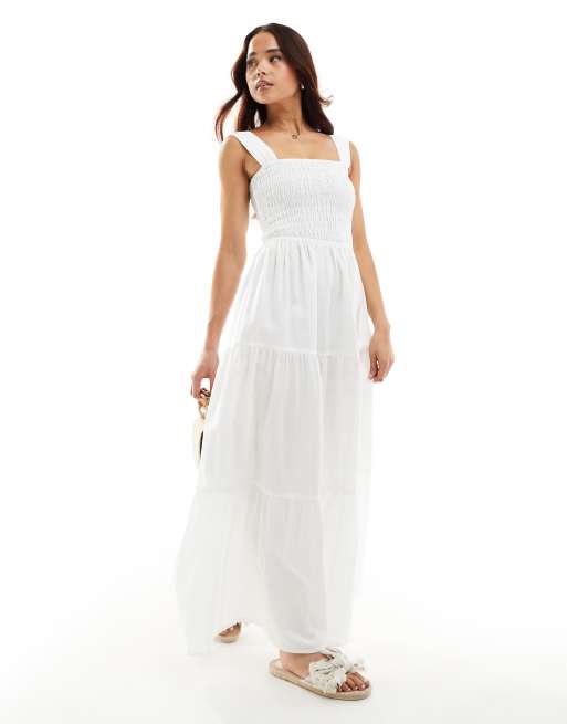 Esmee - Exclusive - Maxi zomerjurk met gesmokte taille in wit