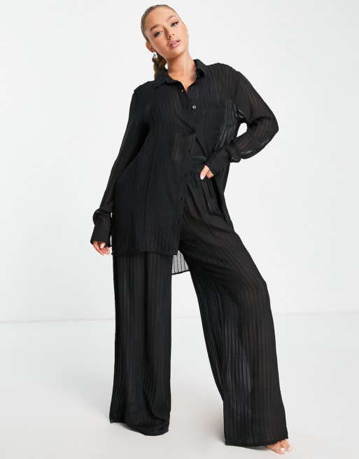 Esmee - Exclusives - Doorschijnend gestreepte strandbroek in zwart