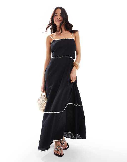 Esmée - Exclusives - Lange strandjurk met zigzag en witte zoomdetail in zwart
