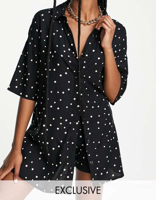 Esmee - Strandoverhemd in zwarte basis met stippen, deel van co-ord set