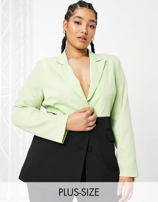 Extro & Vert Plus - Blazer in contrasterend zwart en limoengroen
