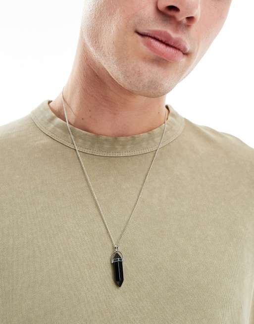 Faded Future - Ketting met lang hangertje van natuursteen in zilver