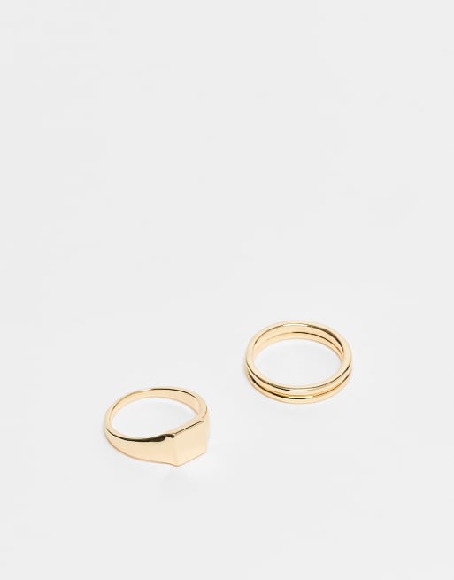 Faded Future - Set van 2 ringen van brede en zegelring in goud
