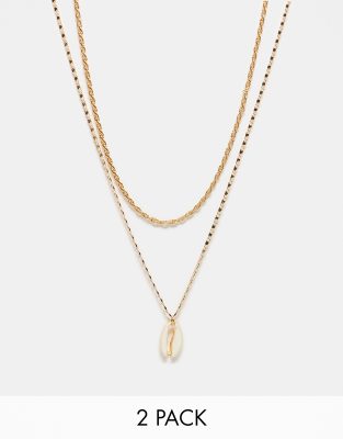 Faded Future - Set van 2 touwketting en ketting met schelphanger in goud