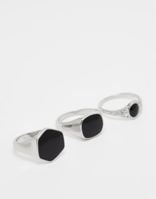 Faded Future - Set van 3 zegelringen met zwart hars in zilver