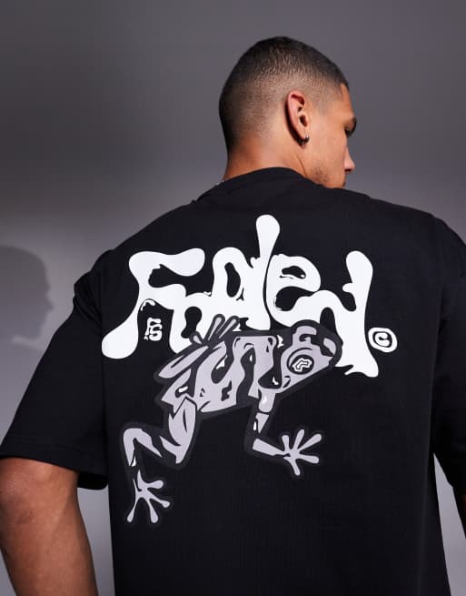 Faded Store - T-shirt met contrasterende paddenprint op de achterkant in zwart